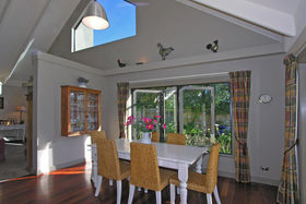 This deliciously designed house has cathedral ceilings in the living & dining rooms, both of which overlook private, landscaped gardens. Indoor / outdoor flow rules here!