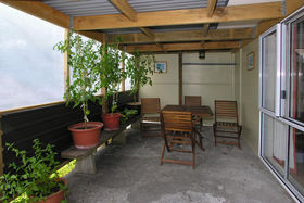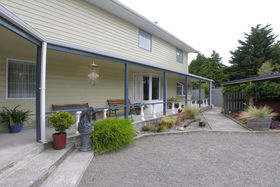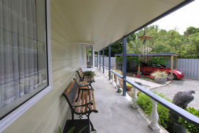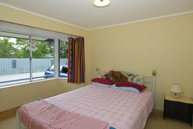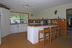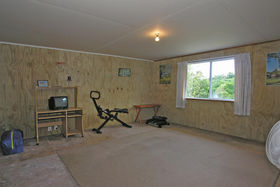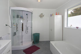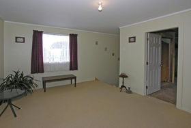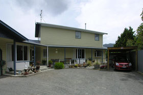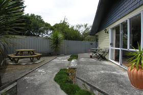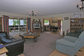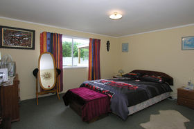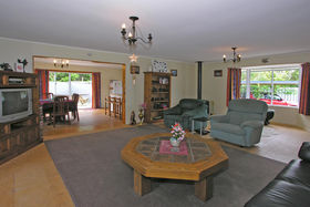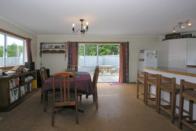 The lounge has a gas fire which warms the whole house. Ranch sliders lead out on to a deck. 2 large bedrooms upstairs, 2 + bedrooms downstairs. Bathroom has a separate shower, with gas hot water. Separate toilet.
