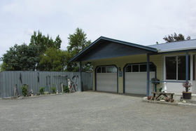 Large double garage with sink, hot and cold water, parking for 5 cars, fully fenced 911m2 low maintenance section.