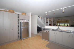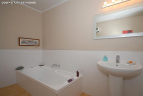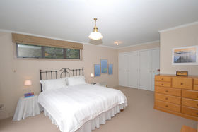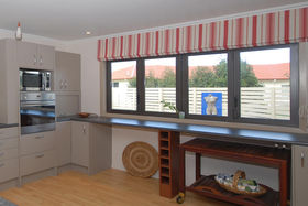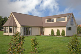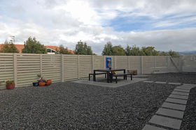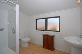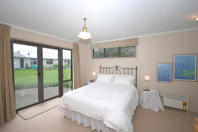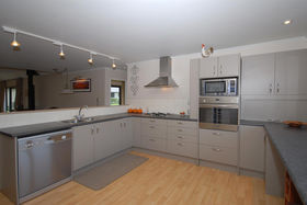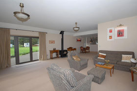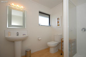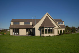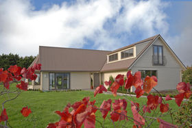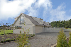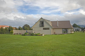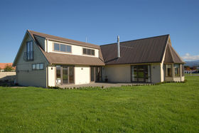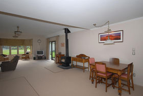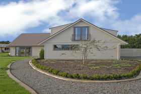 The design and layout of the home has been well thought out with the idea of catering for numerous guests or a large family. The ground floor comprises of large living/dining and is efficiently heated by a woodburner. A spacious kitchen with excellent storage, showcases stainless steel appliances and the bonus of a gas hob. Bi fold windows open up to greet the outside living area. A nook under the staircase currently works well as computer area. To the left a hallway leads you to a family bathroom a single bedroom/office with doors onto an outside patio. At the end of the hallway the master bedroom awaits with ensuite bathroom and embraces the morning sun. Internal access double garaging and laundry area complete the ground floor.