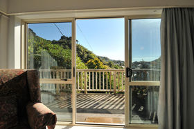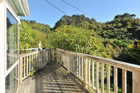 Sited on an elevated section, overlooking the Khandallah pool/park area, hidden behind mature trees and shrubs,with resident Native birds to entertain.