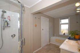 Consisting of three double bedrooms, wide entrance hall, living/dining area with a woodburner on brick hearth a focal point, French doors exit out to covered front patio, kitchen has polished wood floors, good storage and overlooks the back garden, bathroom has shower and bath.