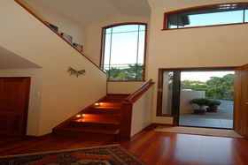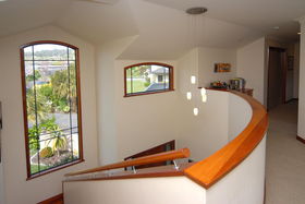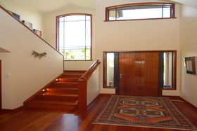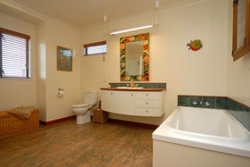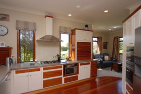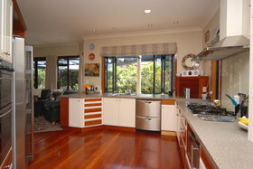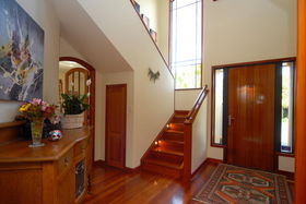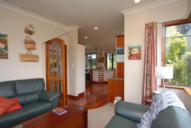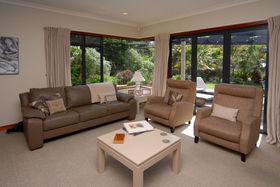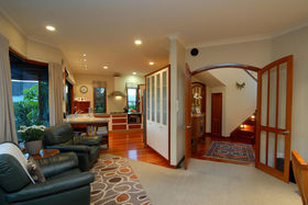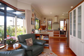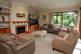 Double integral garaging has rear yard access large enough for a trailer. Outdoors give you private landscaped gardens adjoining the reserve.