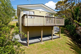 4-bedroom bungalow on full 805m² site. Weatherboard, new kitchen, carpets and new bathroom. Separate toilet. Gas heating, hot water and cooking, beautiful condition throughout. Basement, garage with extra large handyman's area with internal access. Large decks with plenty of sun, a real picture. Be Quick!