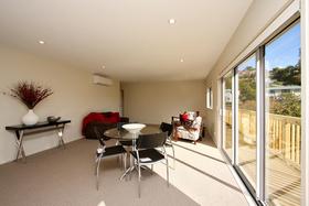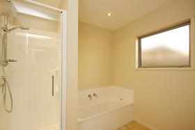 Featuring neutral interior decor, open plan living, heat pump, double glazing, 2 double bedrooms, bathroom with separate shower and bath, internally accessed single garage and off street parking.