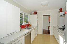 This home is from the classic era with 3 bedrooms and open plan living. The kitchen and bathroom are fresh and modern as is the interior decor. There is off street parking for up to 3 cars. Fabulous back lawn for the kids and fresh produce from the vegetable garden in its sheltered heat trap.