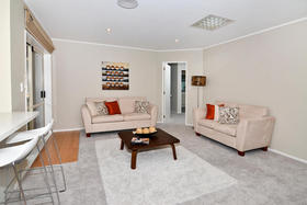 Stylish brick & tile single level executive home loaded with creature comforts. Features, 4 bedrooms, 2 bathrooms, modern kitchen, quality chattels, trendy decor, spacious living, plus an extra-large rumpus room ideal for teenagers, hobbies or business. With a sunny, north facing aspect and lots of easy outflow everywhere, you'll enjoy the relaxing privacy of a lovely garden setting, paved entertainment areas and flat green lawn space within a secure, fenced & gated low maintenance section on 664sqm freehold land. A totally desirable address in sought after location. Early settlement available.