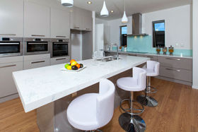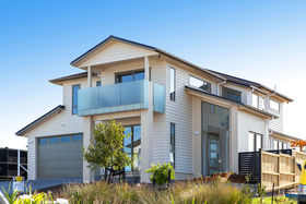 A grand entrance, wide passageway, high stud, quality tiles all impact on the buyer entering this really sunny, light 5 bedroom brand new weatherboard home. Being close to the new shops to be built, commanding an elevated position in the street and subdivision, with no other homes for sale in this garden street all add up to make this a very popular and sought after home. Even the northern neighbour has single level type home and has no windows opening onto this home further enhancing the privacy aspect and also allowing a lot more sunlight to fill the home. The large north facing deck has easy access flowing from open plan gourmet kitchen dining & family room. The kitchen has around the corner another kitchenette containing another sink plus gas hob for heavy cooking. The main kitchen has an induction hotplate plus no less than microwave oven, steam oven and good sized Bosch oven, all placed around eye level for easy cooking. Well spec'd upmarket home, even has water temperature control.