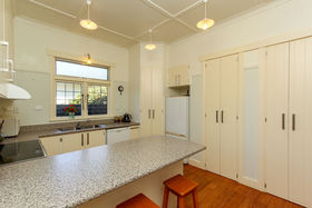 The original 1920's home has a multiple living spaces and numerous bedrooms (6 - 7 in total) and bathrooms on both levels ensure complete family harmony. The cosiness is perfect for cool winter evenings. Fully fenced 1147 sqm grounds enjoy easy street access with the ability to access the back site to a most magnificent 'man's shed' and double carport shelter /off street parking for boat or trailer.