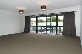 Spacious open plan single level living area which opens out to a balcony deck.