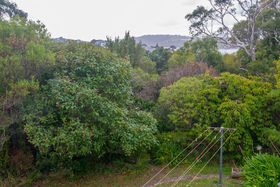 The sunny front yard is flat and the section slopes down the back with terraced areas, plenty of scope for flower and vege gardens, maybe backyard hens!