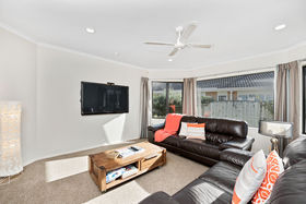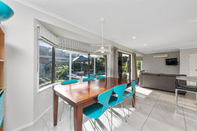 Superbly presented and ready for a special family or those with family in mind. Whether you want to fill it with laughter, noise and toys or simply enjoy the peaceful tranquillity, the layout and setting will cater for both. Enjoy the light filled open plan kitchen/dining/family areas with stacker doors opening onto a covered patio, separate lounge and ample lawn area that beckons play and pets and the fully fenced position which makes this a secure environment to relish in. Four bedrooms, office nook, master with ensuite, ample garaging with dual access and boat parking complete this perfect picture. This is an excellent opportunity to purchase in a quiet cul-de-sac in sought after Royal Palms. Close to beach, schools, Fashion Island & the Plaza. Better be quick, this brick and tile beauty won't be on the market long! Call now!