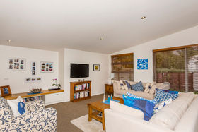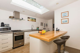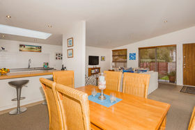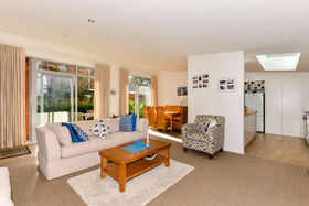 Like . . . the plump, cream lounge sofa suite puffed with shades of blue cushions, the combination of warm, oak tones used in the kitchen edged with its stainless steel appliances, the brown waffle carpet, warmed by underfloor heating, there is a sense of timeless comfort and quality throughout this north facing home. Floor to ceiling glass sliders allow that indoor/outdoor flow to a garden patio area designed for those balmy summer nights of entertaining.