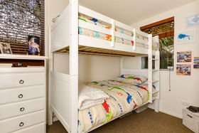 Though barely eight years old, this 3 bedroom or (2 double bedrooms plus study/nursery), weatherboard home hidden from view, down a garden edged driveway, is a unique piece of real estate rarely available in this fabulous location and sought after street. An easy, lock up and leave.